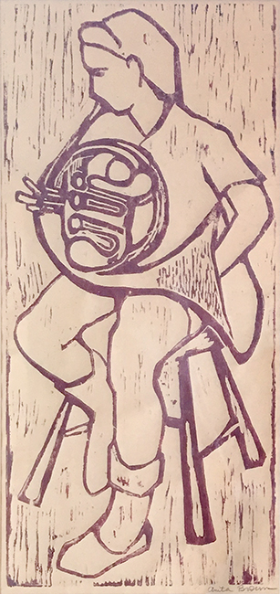 Flute PlayerLinocut, 10.25 x 8.26 in.